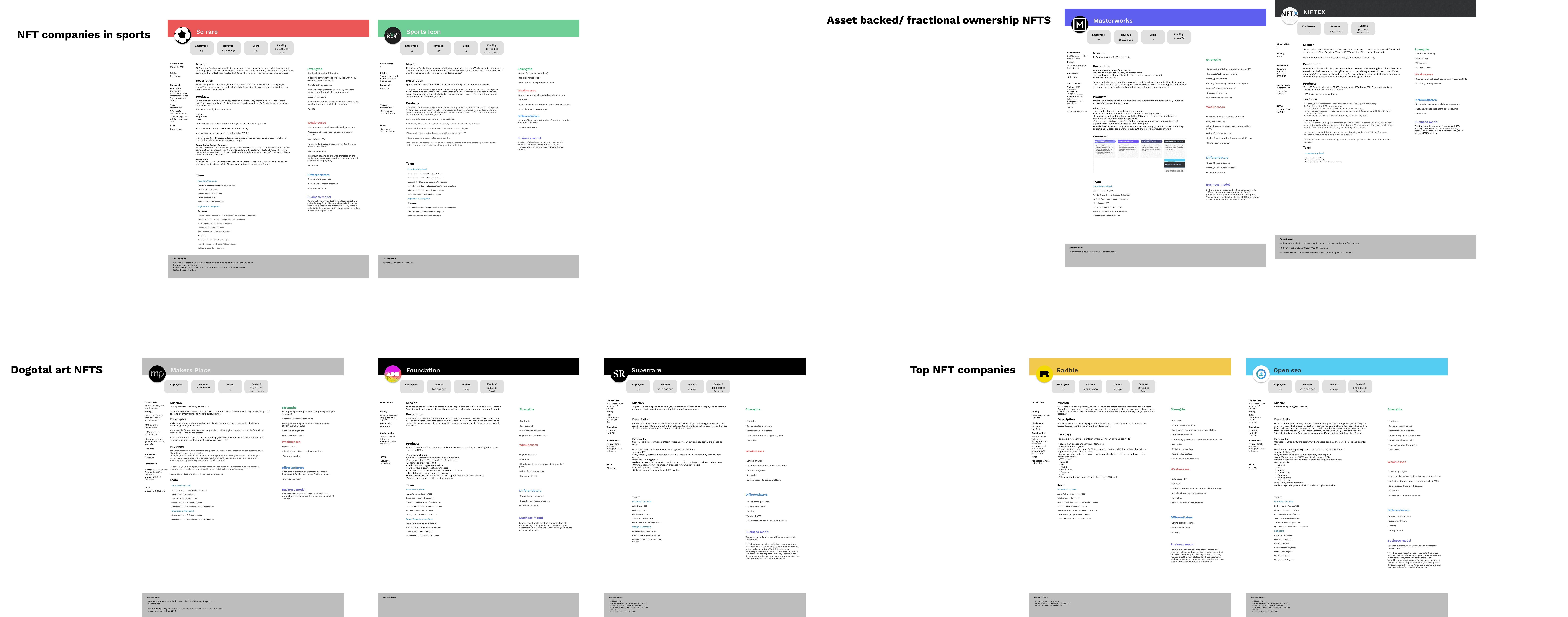 After reviewing the user research we had collected, I conducted competitive research on other NFT marketplaces. I wanted to identify a gap in the market that our product could fill. While there were a lot of blockchain-based marketplaces for collectibles such as art and sneakers, none were solely focused on sports memorabilia.