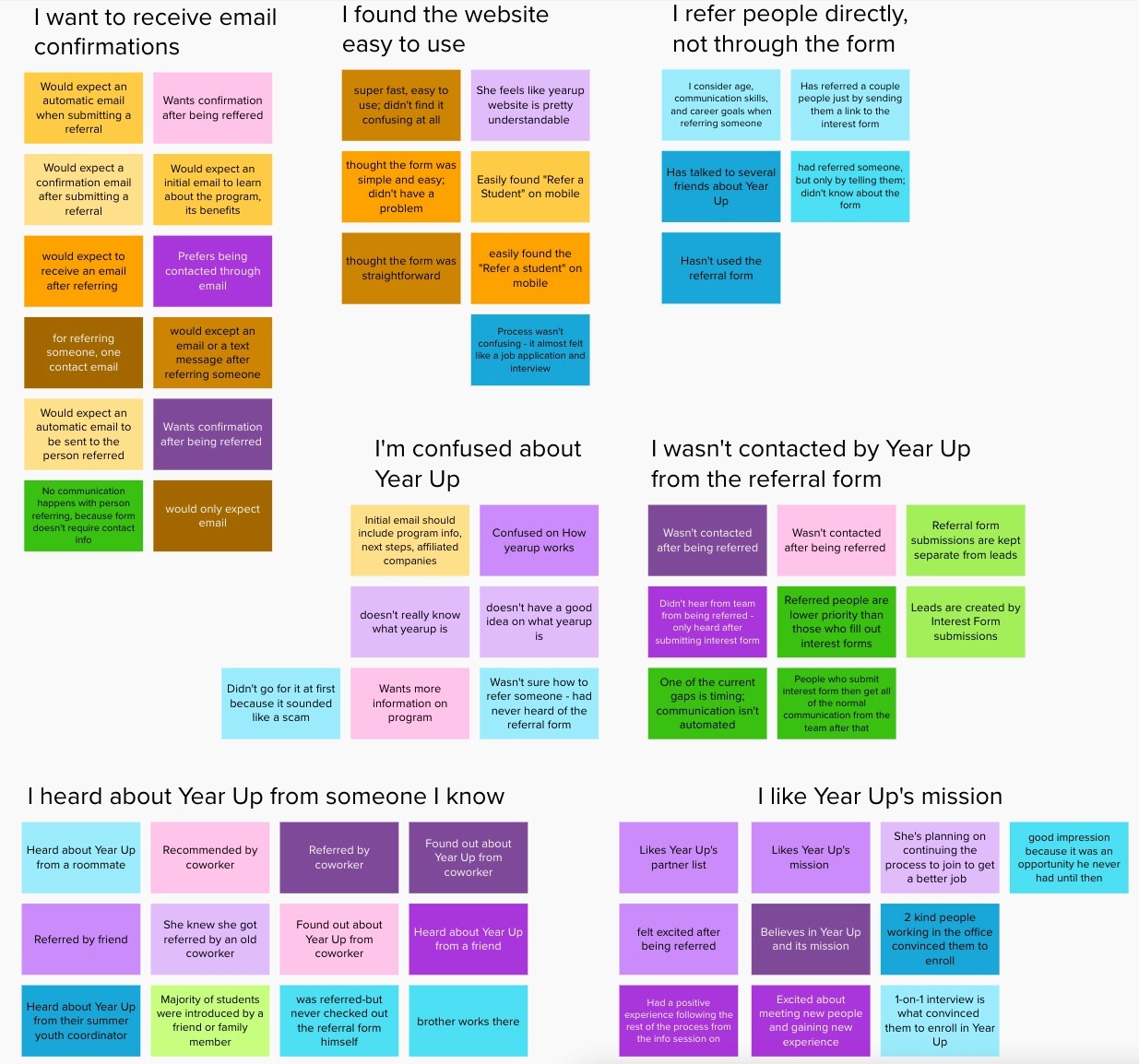 We created an affinity diagram to make sense of what we had learned from our potential users. I grouped information together that was related and labeled them. It turned out that some of my previous assumptions were validated by user input, but there were a couple of differences between the investors that I interviewed. They didn't all invest for the same reasons. The memorabilia collectors also had different motivations. I would use the information from the diagram to create user personas and journey maps.
